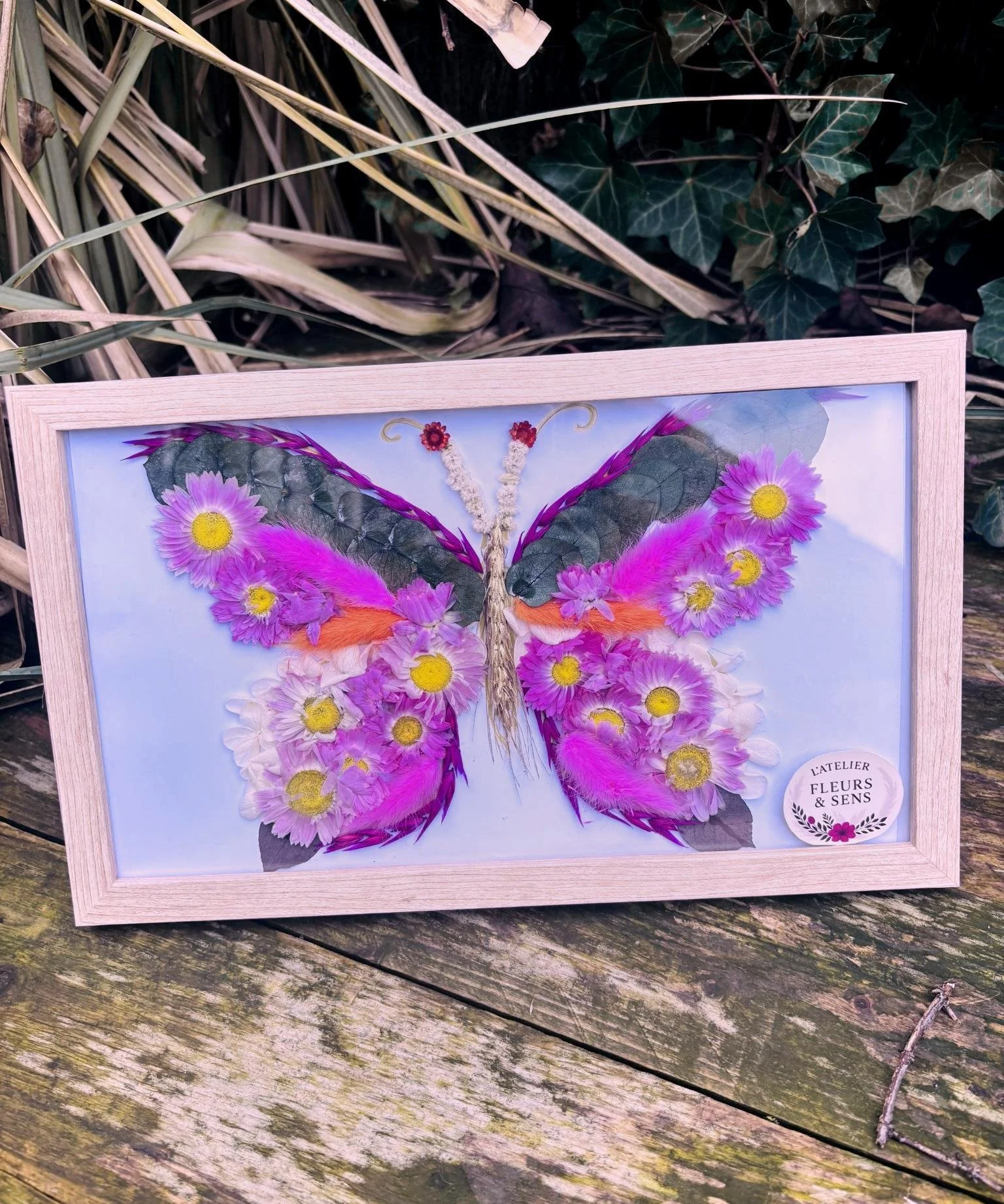 Matériel fourni : structure papillon, fleurs séchées, colle, outils et accompagnement pédagogique.