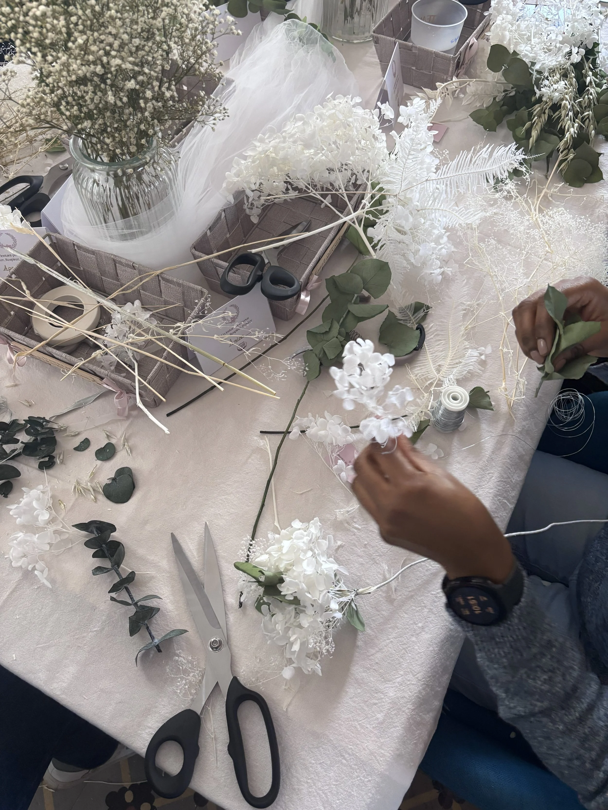 Autour des fleurs séchées, chacune prend le temps de créer, d’échanger et de se connecter à l’instant présent.